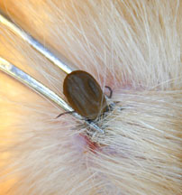 Es gibt auch eine Reihe von sogenannten "Spot-on" Zeckenschutzmitteln vie z.B. Frontline Plus von Merial oder Preventic Spot-on Permethrin von Virbac, die bei dem Hund mittels einer Pipette unter seinem Fell auf seiner Haut aufgetragen werden. Andy bekommt eine Pipette mit Frontline Plus alle 4 Wochen, da dies die häufigsten Zeckenarten in all ihren Lebenszyklen abtötet. Da die Wirkung dieser Zeckenmittel aber meist nach der dritten Woche schon etwas nachlässt, sollte man in der 4 Woche Spaziergänge in Gebieten mit hohen Zeckenaufkommen vermeiden. Die meisten Zeckenmittel schützen auch sicher vor Flöhen.